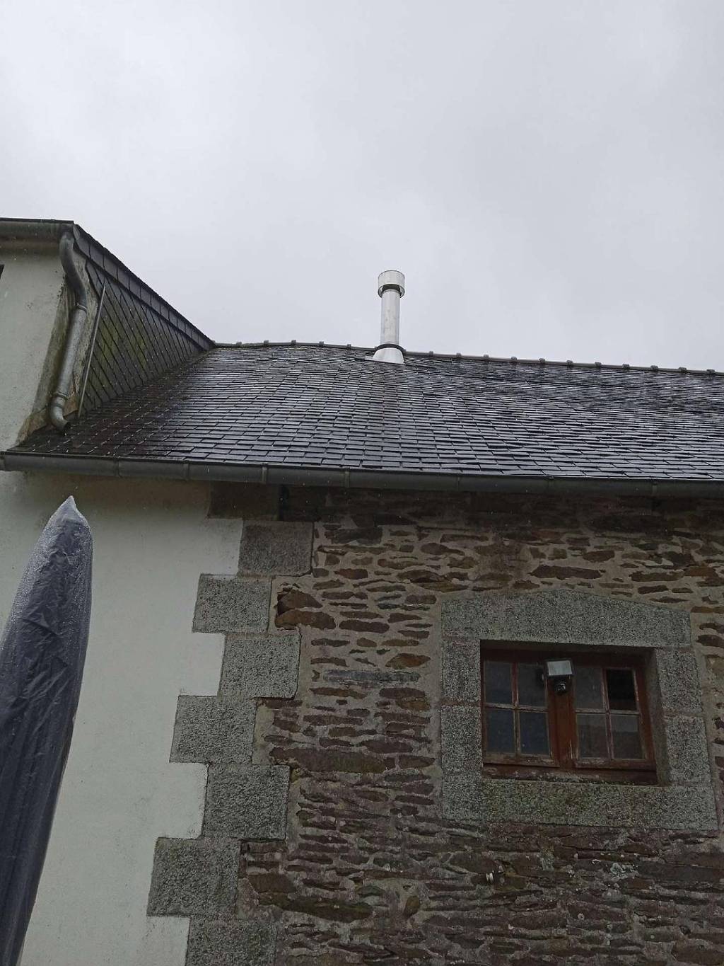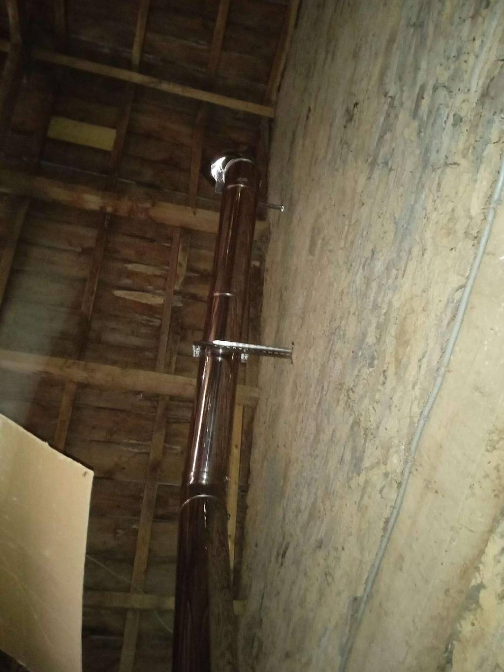 N'ayant pas de conduit de fumées utilisable, nous lui avons proposé d'en créer un en tuyaux inox isolés compatibles à la fumée des poêles à bois.