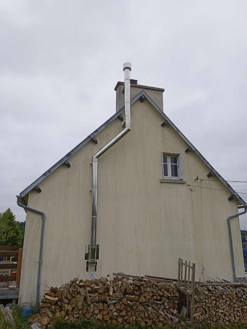 Le conduit de fumée n'étant plus utilisable nous avons créé un conduit extérieur en inox isolé.