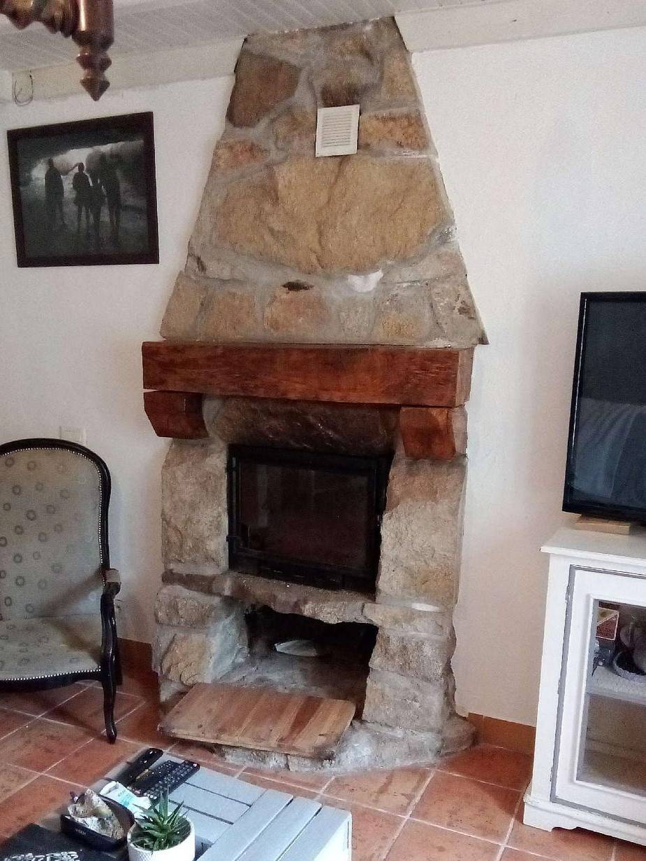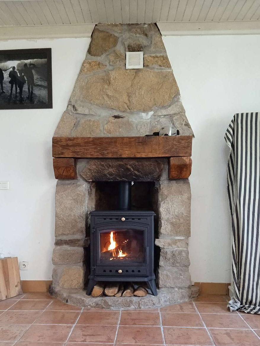 Chez ce client situé à Scaer à proximité de Rosporden dans le Finistère (29), nous avons cassé le sol où était posé leur insert pour y faire entrer leur poêle à bois Invicta de 9 Kw.