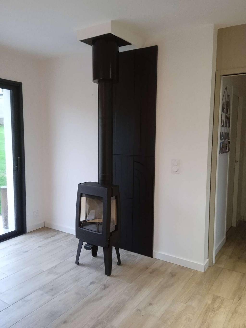 Installation d'un poêle à bois DOVRE modèle Sense 103 sur la commune de Lennon dans le Finistère (29)