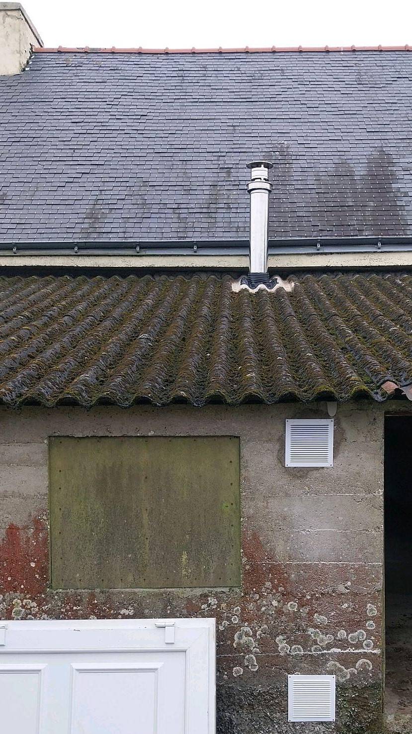 Remplacement et déplacement d'une chaudière fioul par une chaudière à granulés dans la commune de Scaër dans le Finistère.