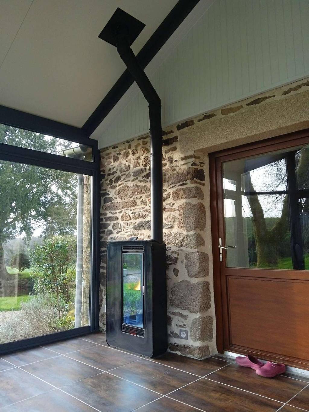 Installation d'un poêle un granulés de bois dans ce magnifique endroit à Poullaouen, non lieu de Carhaix-Plouguer dans le Finistère (29).