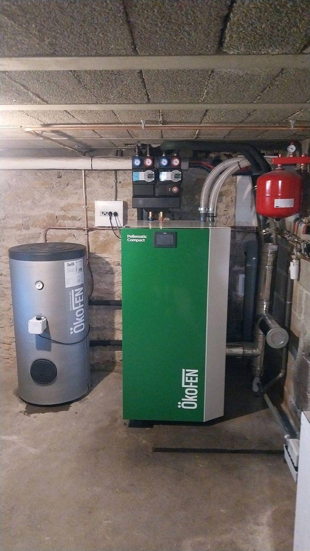 Installation d'une chaudière à granulés Okofen Pellematic compact par un spécialiste du chauffage au bois RGE