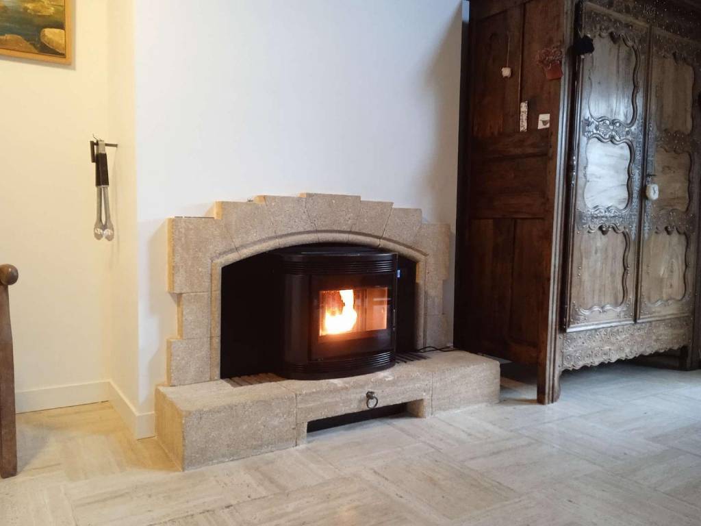 Jolie installation d'un insert à granulés dans une cheminée par un chauffagiste certifié RGE QualiBois